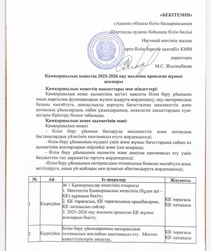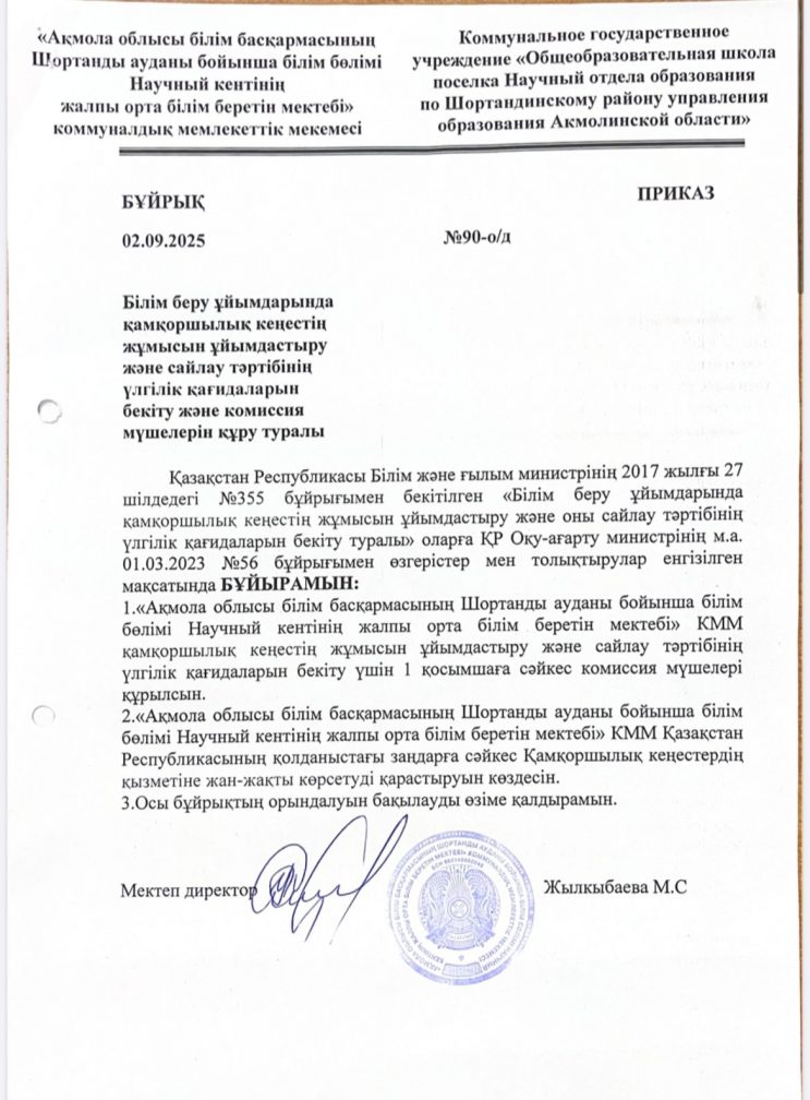 Коммунальное государственное учреждение «Общеобразовательная школа поселка Научный отдела образования по Шортандинскому району управления образования Акмолинской области»