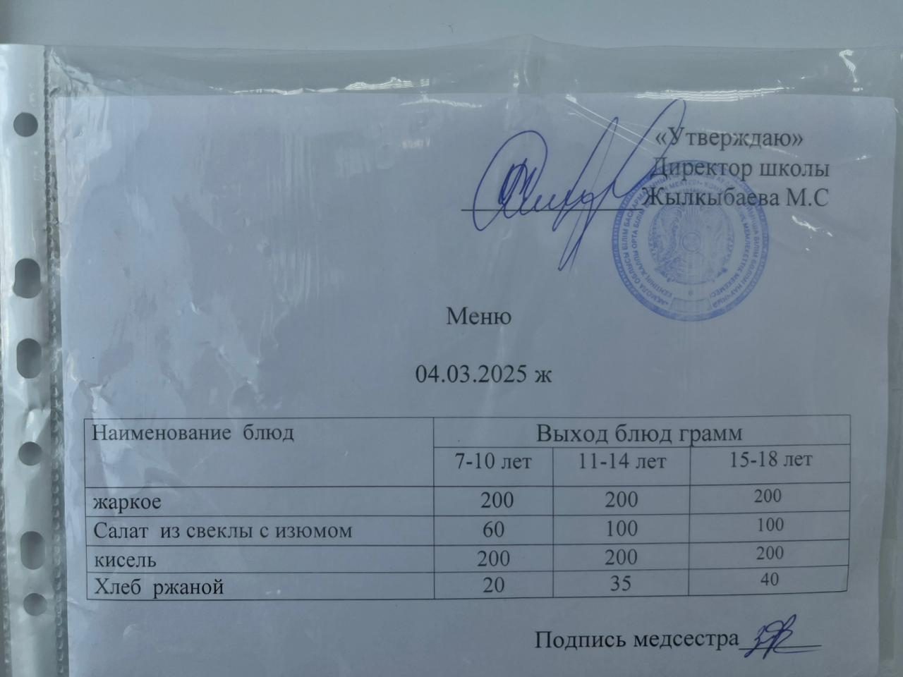 Ас мәзірі 04.03.25 ж