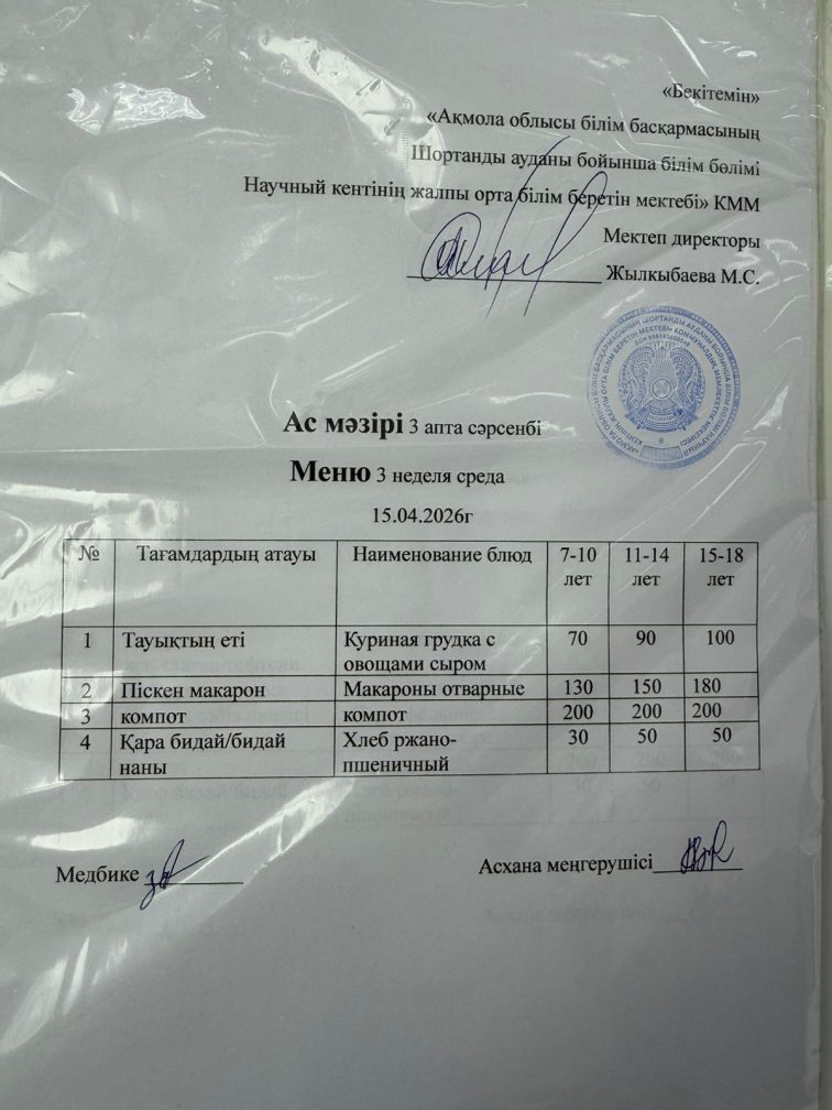 «Ақмола облысы білім басқармасының Шортанды ауданы бойынша білім бөлімі Научный кентінің жалпы орта білім беретін мектебі» коммуналдық мемлекеттік мекемесі