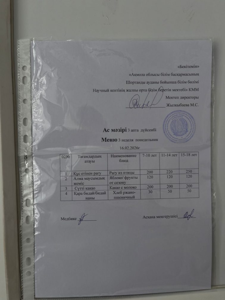 «Ақмола облысы білім басқармасының Шортанды ауданы бойынша білім бөлімі Научный кентінің жалпы орта білім беретін мектебі» коммуналдық мемлекеттік мекемесі