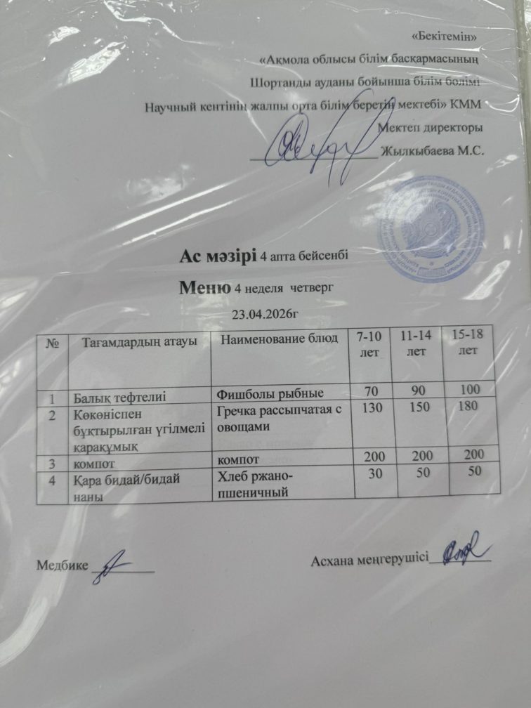 «Ақмола облысы білім басқармасының Шортанды ауданы бойынша білім бөлімі Научный кентінің жалпы орта білім беретін мектебі» коммуналдық мемлекеттік мекемесі