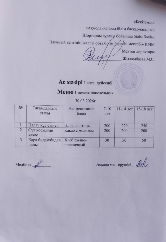 Коммунальное государственное учреждение «Общеобразовательная школа поселка Научный отдела образования по Шортандинскому району управления образования Акмолинской области»