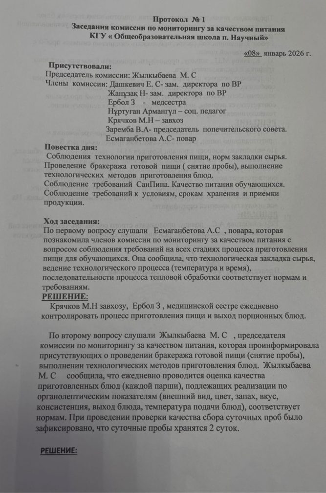 Коммунальное государственное учреждение «Общеобразовательная школа поселка Научный отдела образования по Шортандинскому району управления образования Акмолинской области»