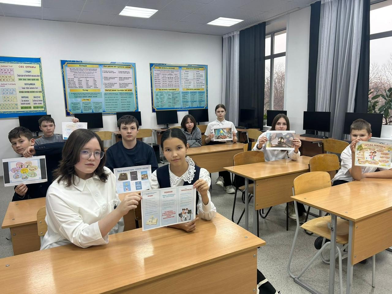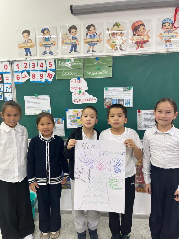 Бүгін мектебімізде «Заң және менің құқығым» атты танымдық сынып сағаттары өткізілді. Сабақтың мақсаты – балаларға өз құқықтары мен міндеттері туралы түсінік беру, заңды құрметтеуге тәрбиелеу болды.