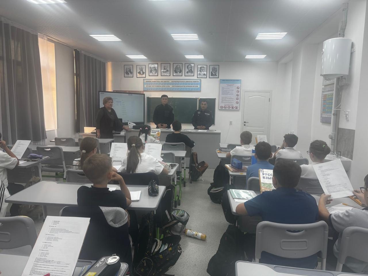 Бүгін мектебімізде оқушылардың қауіпсіздігі мен құқықтық тәрбиесіне бағытталған профилактикалық шара аясында полиция қызметкерлерімен кездесу өтті.