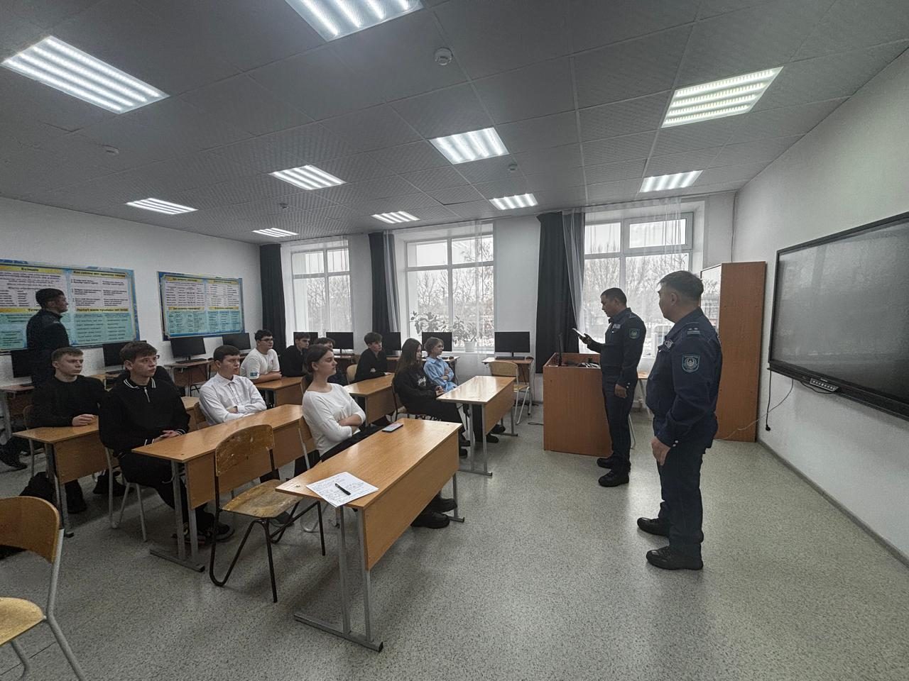 Полиция өкілдері оқушыларға қоғамдық орындардағы тәртіп ережелері, құқықбұзушылық үшін жауапкершілік, заң талаптарын сақтау және бір-біріне құрметпен қарау туралы түсіндіріп өтті. Әсіресе буллингтің, киберқауіпсіздіктің және кәмелетке толмағандардың жауапкершілігінің алдын алу мәселелеріне ерекше назар аударылды.
